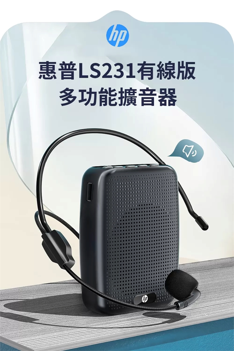 HP 惠普 LS231 多功能隨身擴音器,無論是課程導覽、聚會擴音都適用,可隨身揹帶擴大音量、免手持麥克風!搭配77mm大尺寸揚聲器,讓聲音清晰明亮,續航可高達五小時。