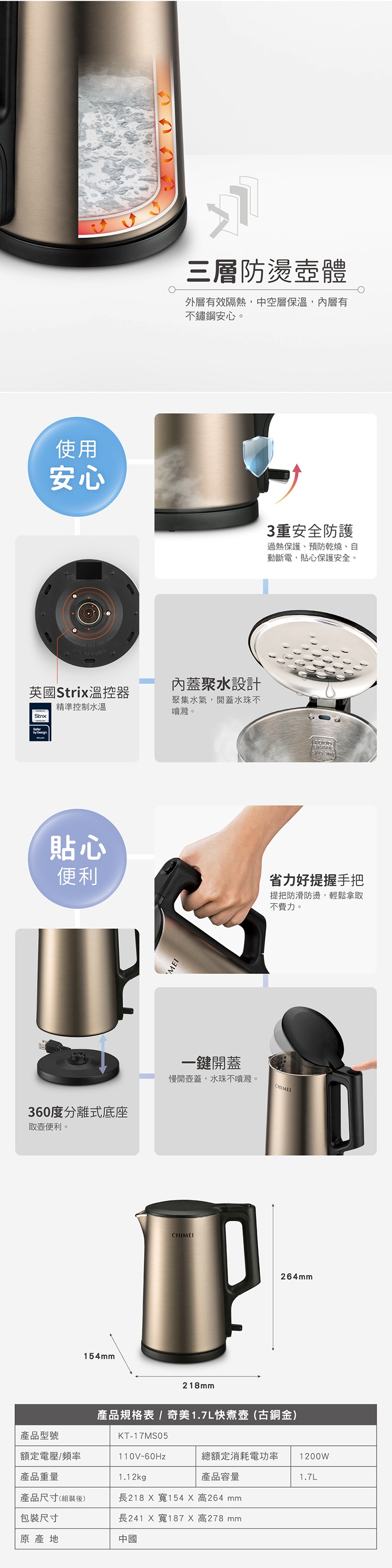 ◆多重安全防護:沸騰自動斷電、防乾燒保護、過熱保護,避免乾燒造成危險。