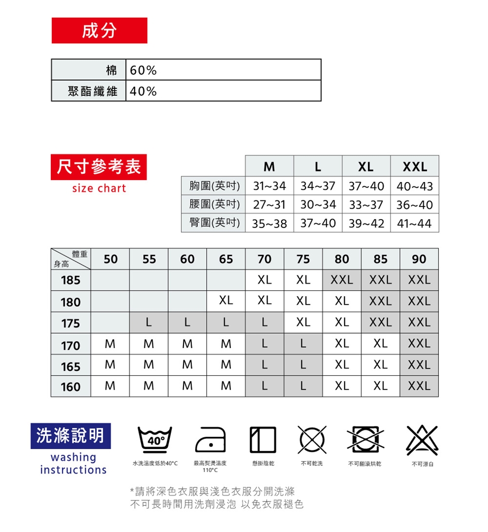 材質:60%棉、40%聚酯纖維