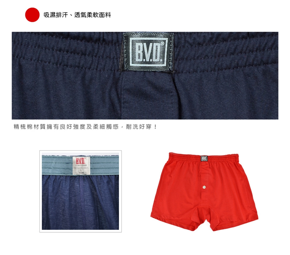 BVD 吸濕排汗開襟針織平口褲