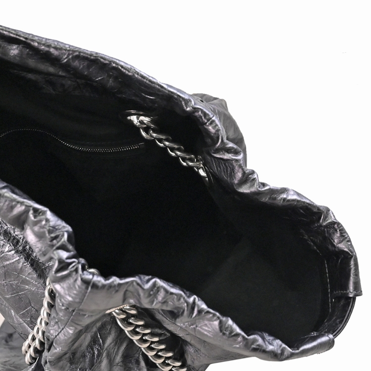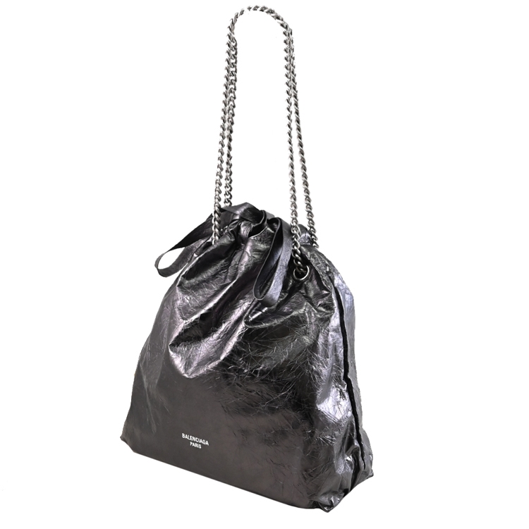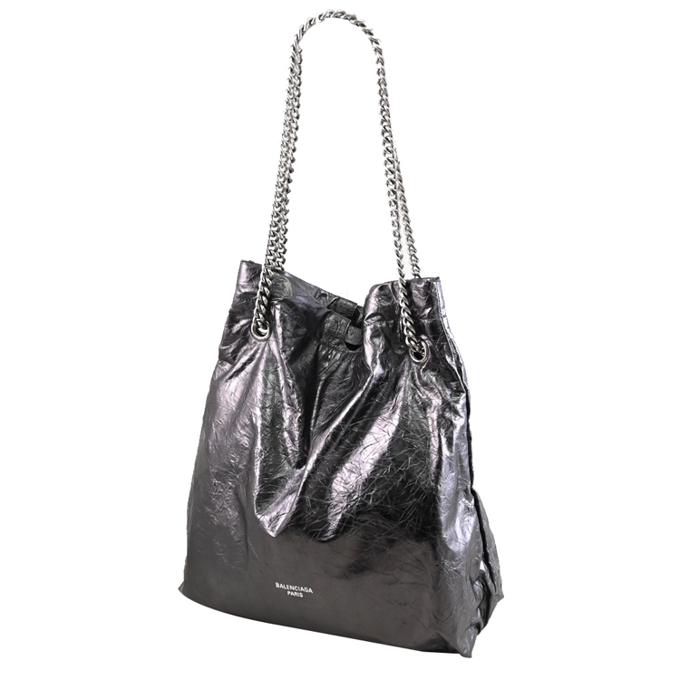 《BALENCIAGA》,深受不少國內外名人青睞的品牌,其魅力在台灣持續燃燒,是許多人踏入名牌世界的第一選擇,熱銷經典款再創新設計,此款CRUSH TOTE,採用揉製亮面牛皮材質+燙印LOGO,內有1拉鍊袋,大容量收納空間,可放A4文件、摺疊傘或水瓶等隨身物品,特殊束口設計,可依個人身形變換肩背或斜背攜帶,顯出低調奢華的質感,都會時尚感。
