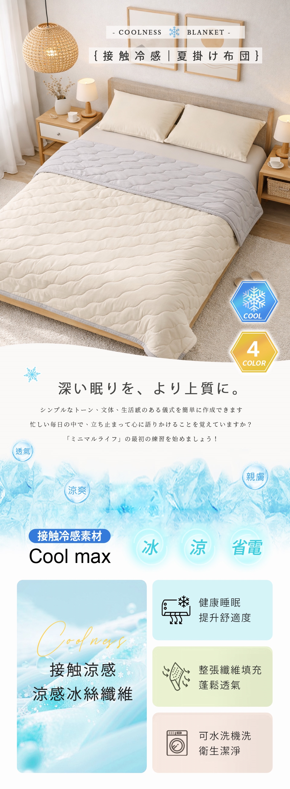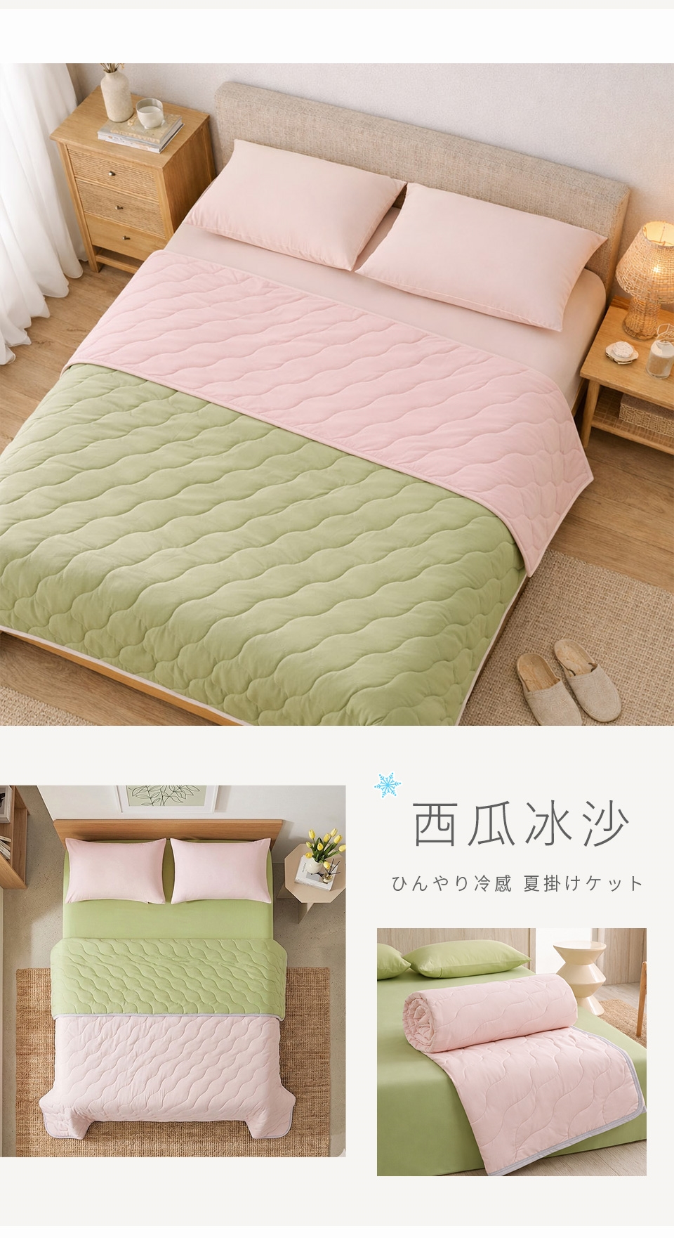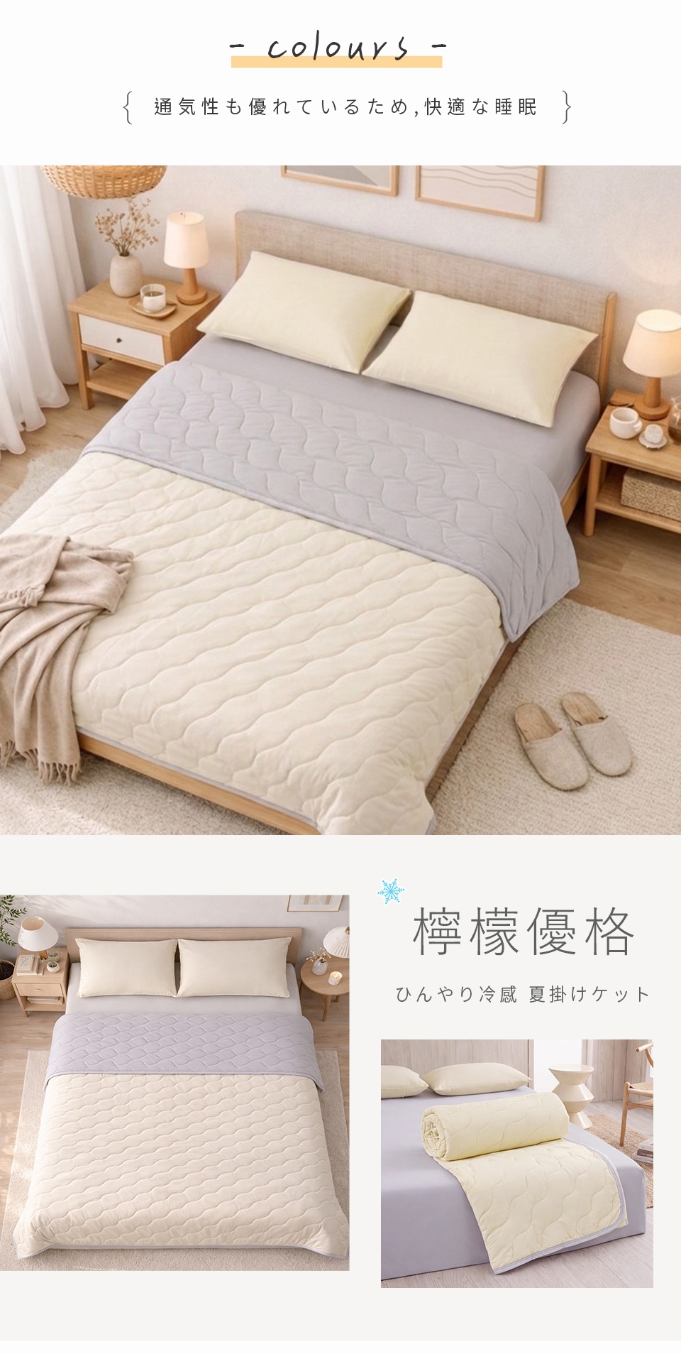 • 雙色設計雙面涼感,可隨心情或室內風格翻轉使用。