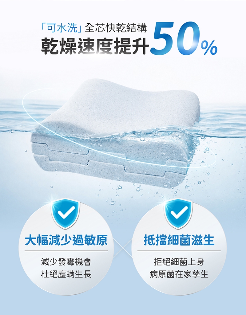 ◆枕芯可直接水洗(手洗/機洗),但請勿使用酵素類等強效洗衣精、漂白水、柔軟精等、以免影響產品功能
