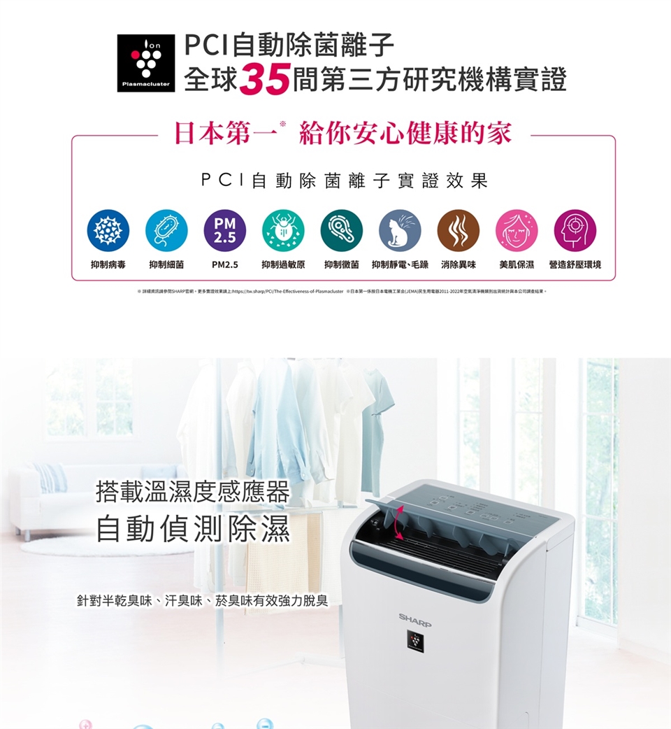 • 搭載溫濕度感應器自動偵測除濕