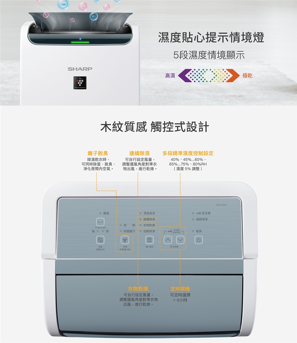 • 濕度感知燈號(5段濕度情境顯示)