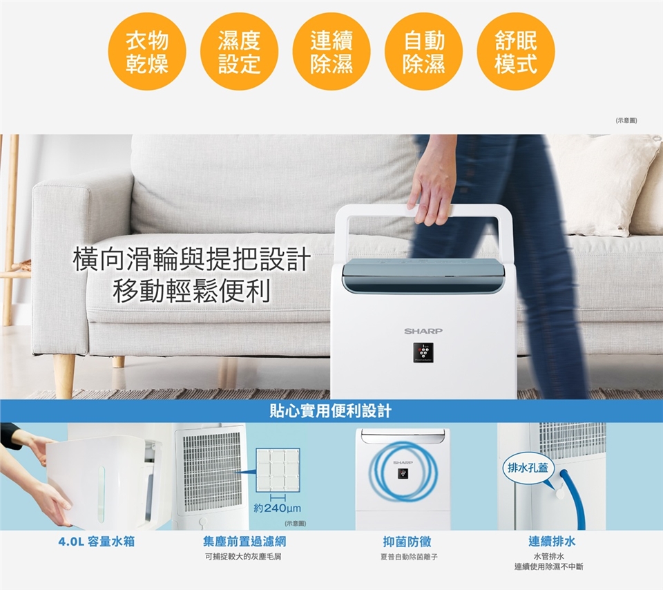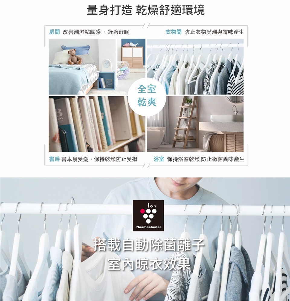 • 衣物乾燥/手動濕度設定/連續除濕/自動除濕四種模式,並新增舒眠模式