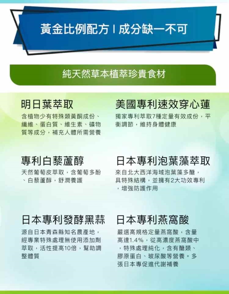 商品詳細介紹 體驗說明 不可體驗 使用方法說明 1.食用方式 一般保健,每日一次2粒(6-12歲,每日一次1粒);加強保健,每日二次,每次2粒。2.請於空腹或飯前搭配溫開水食用。 注意事項 未成年及懷孕婦女禁食