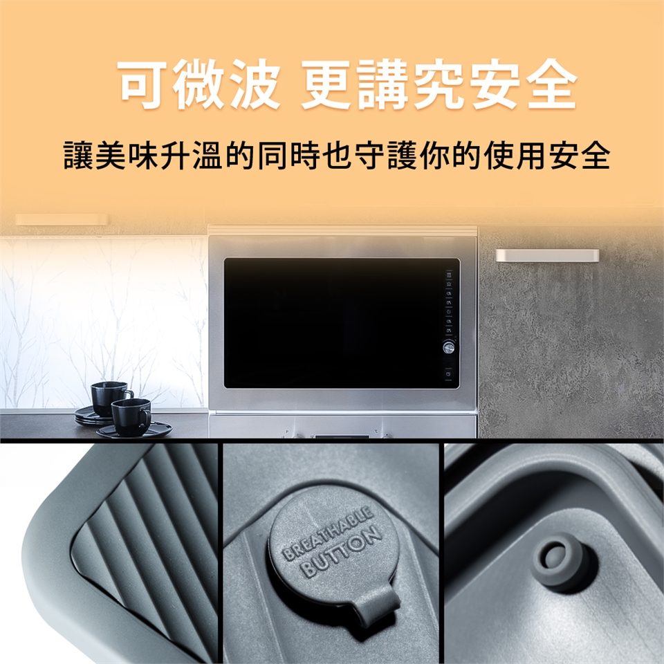 4. 使用微波爐加熱時,請將矽膠蓋上的洩氣閥打開。