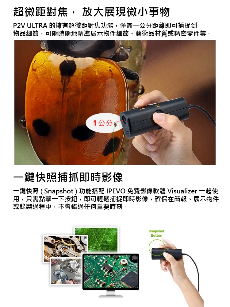 【IPEVO 愛比科技】IPEVO 愛比科技 P2V ULTRA 實物攝影機全套組(二代)