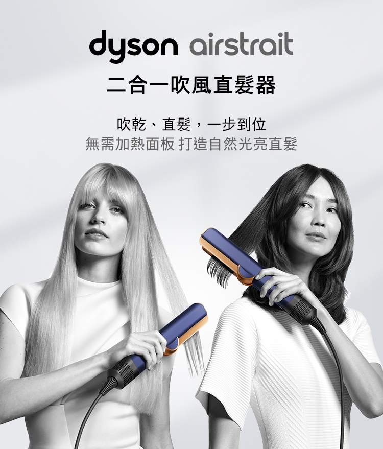 3. 乾濕兩用省時省心:不依賴加熱面板,無熱傷害: 傳統加熱式直髮器,利用高溫造型易造成頭髮斷裂乾枯。Dyson二合一吹風直髮器,提升髮絲強韌度60% / 水潤度28%/ 染髮退色60%