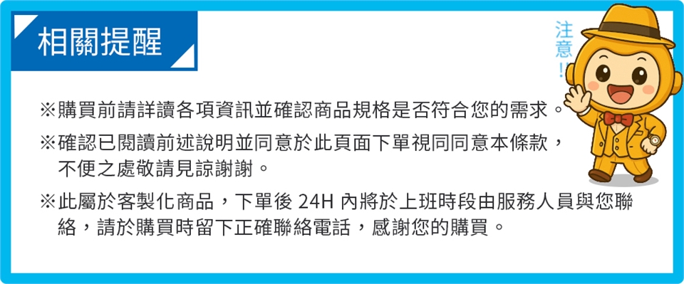 ※確認已閱讀前述說明並同意於此頁面下單視同同意本條款,不便之處敬