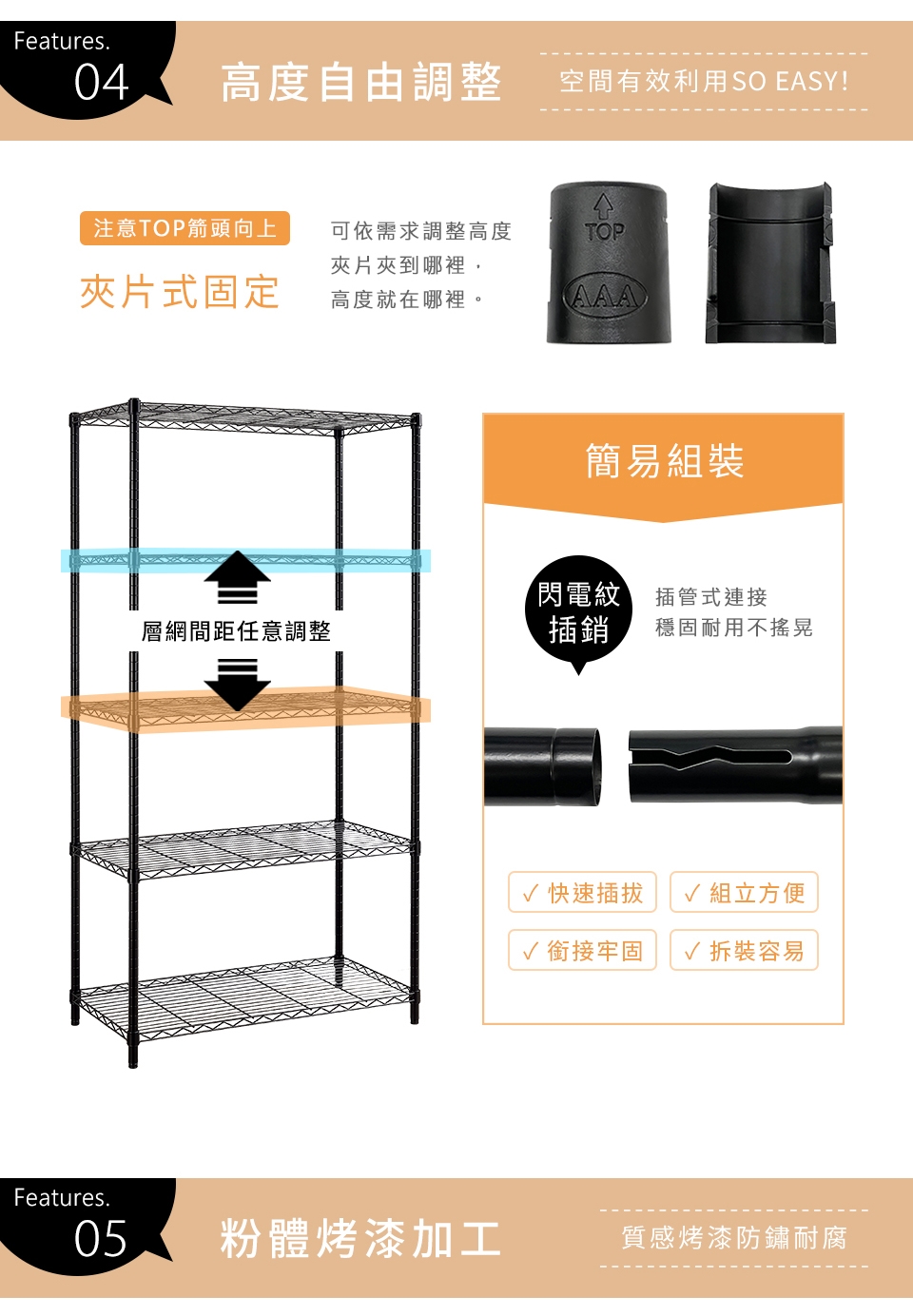 3.結構檢查: 網片與夾片必須卡緊,以免層架不穩。