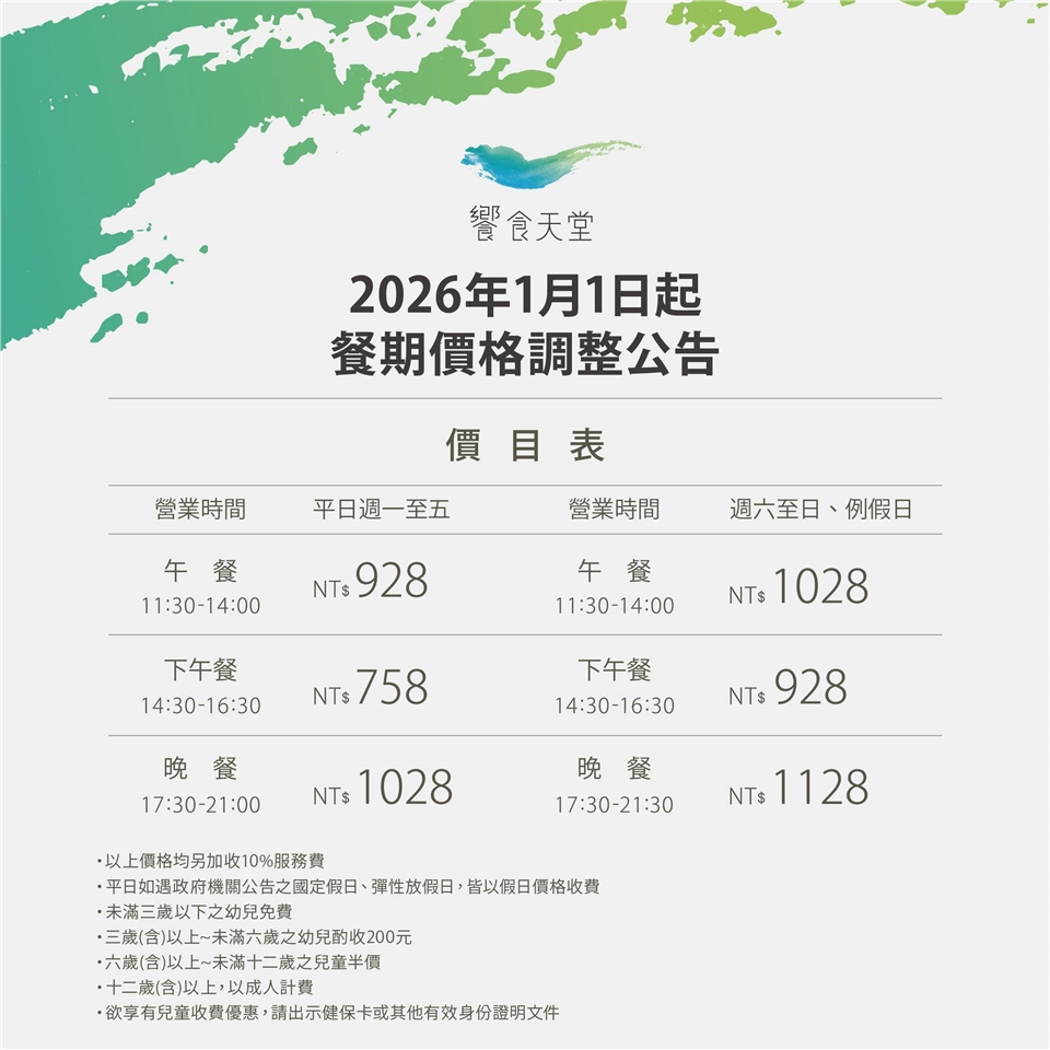 3. 本券優惠於春節除夕~初五等特殊加價期間不適用,但可折抵NT$980餐費。