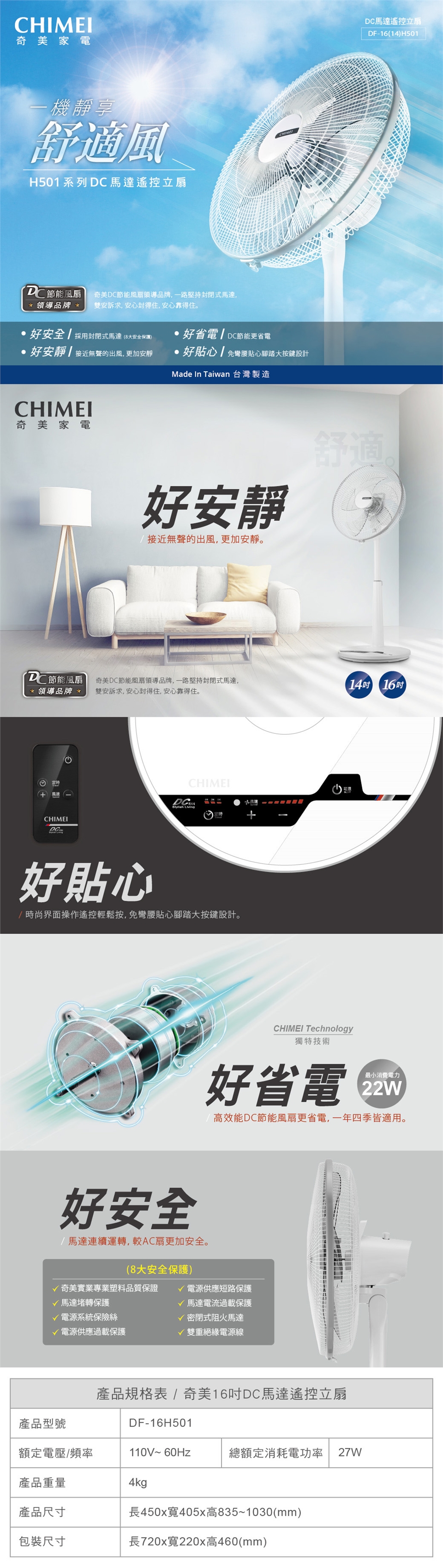 【CHIMEI奇美】16吋DC馬達遙控立扇 DF-16H501