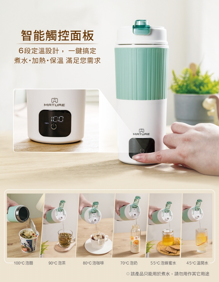 選擇溫度90℃、80℃、70℃、55℃、45℃,不會有煮沸功能,建議裝入已煮沸的飲用水或包裝飲用水
