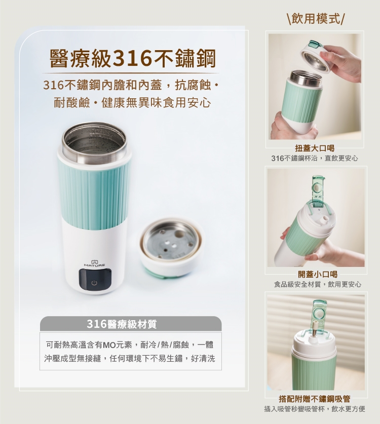 商品名稱:全球通用316不鏽鋼熱電熱水杯