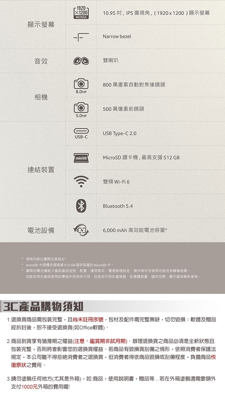 ◎ 螢幕:10.95"""" WUXGA (1920 x 1200)/IPS/300 nits