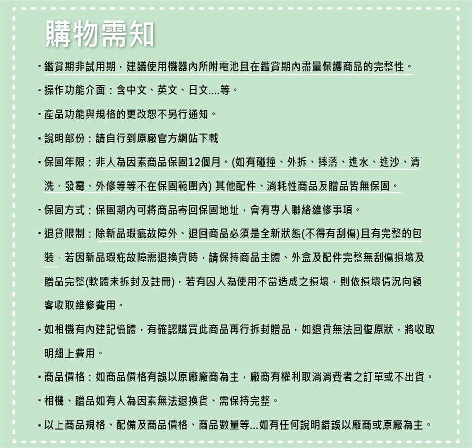 非人為因素保固1年(如有碰撞,外拆,摔落,進水,進沙,清洗,發霉,外修等等不在保固範圍內)