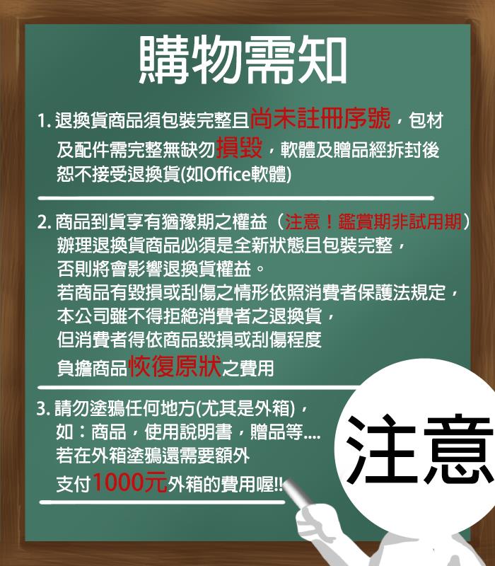 5.軟體和贈品 經拆封後,恕不接受退換貨(如:Office...等軟體)