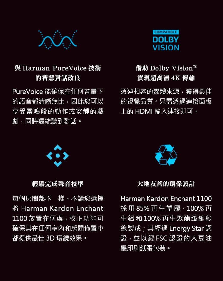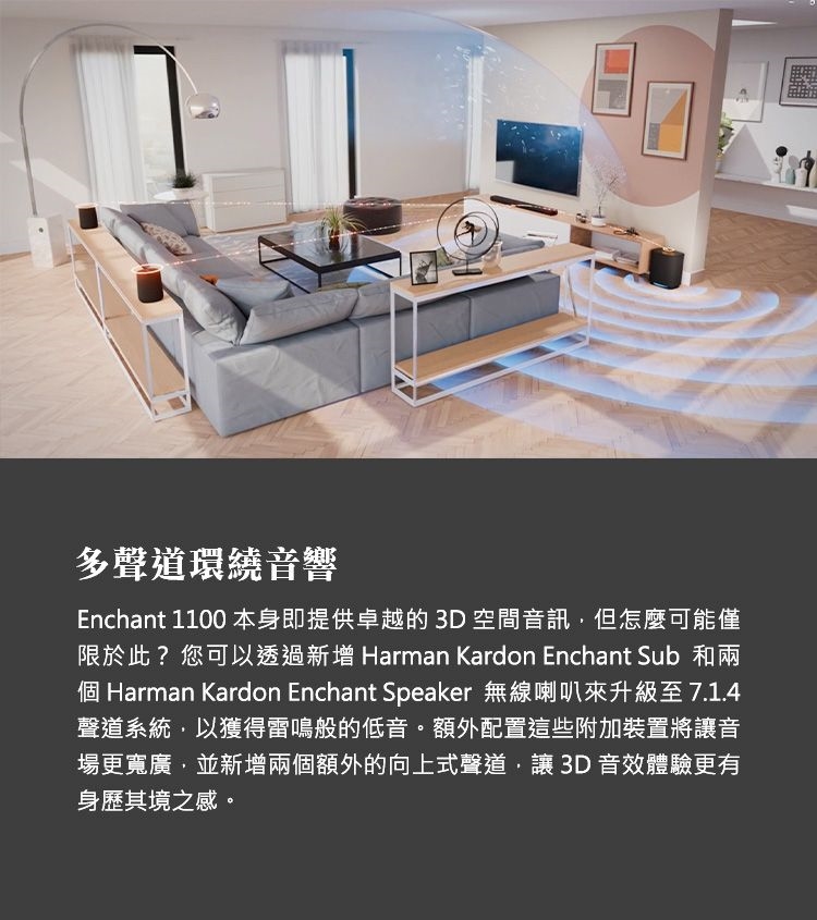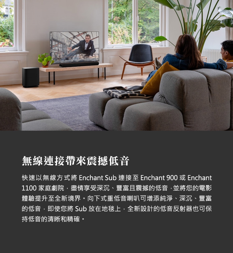 ●可選配Enchant Sub和兩個Enchant無線喇叭,升級至7.1.4聲道系統