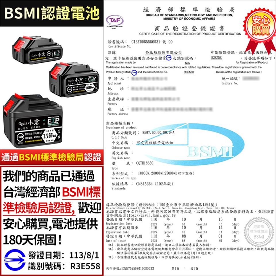 電池檢驗字號:R3E558
