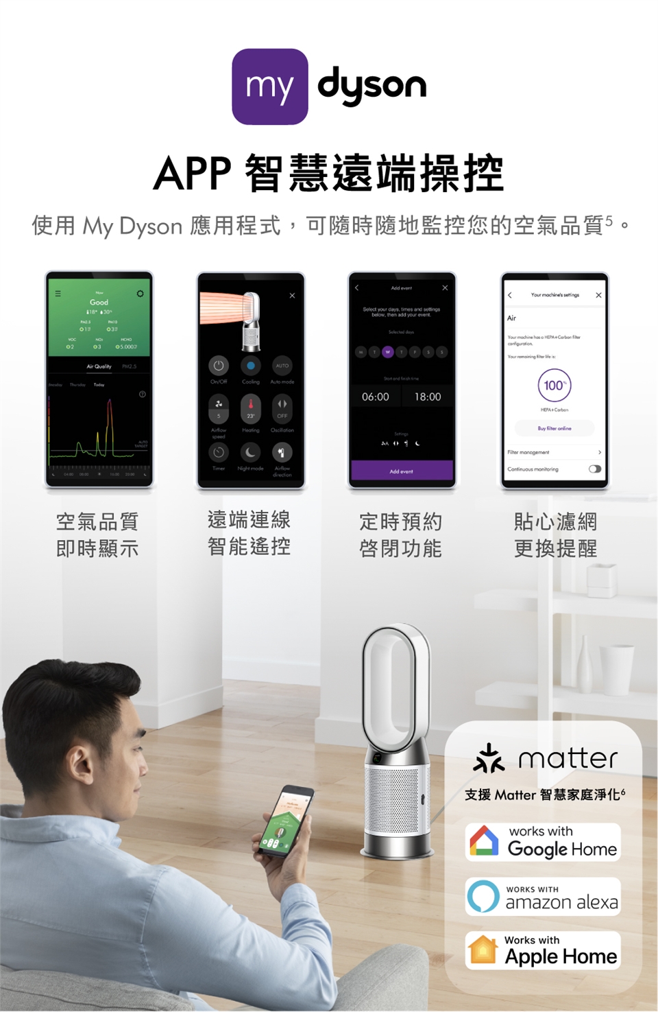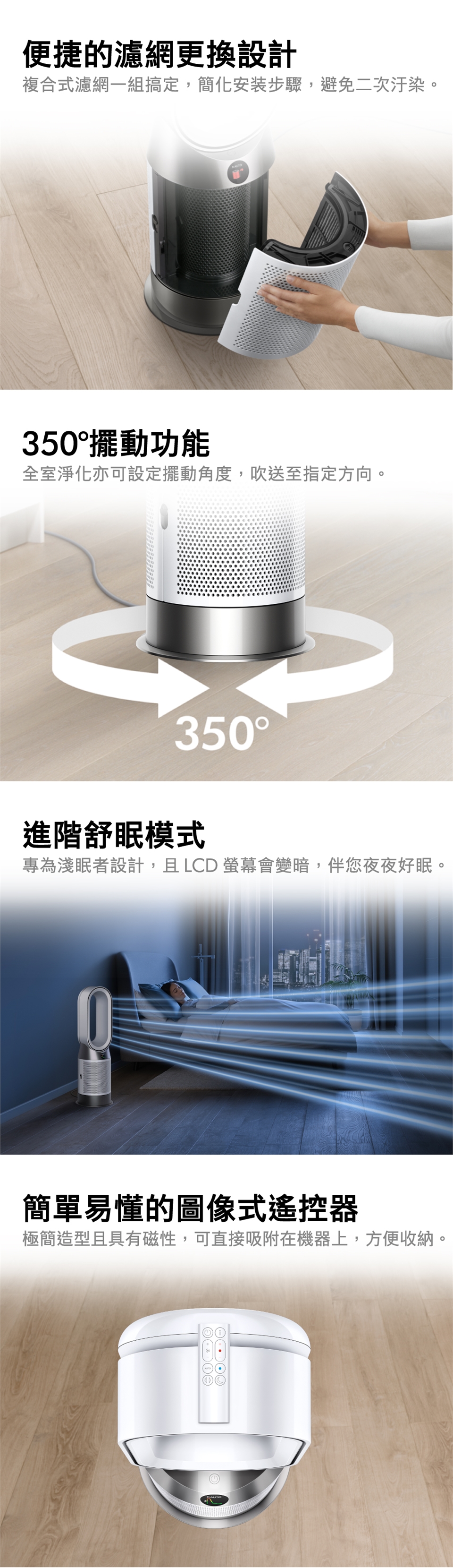 吹送模式:風扇模式直接吹送潔淨暖風或涼風;淨化的空氣氣流可讓您夏天涼爽怡人冬日溫暖舒適。
