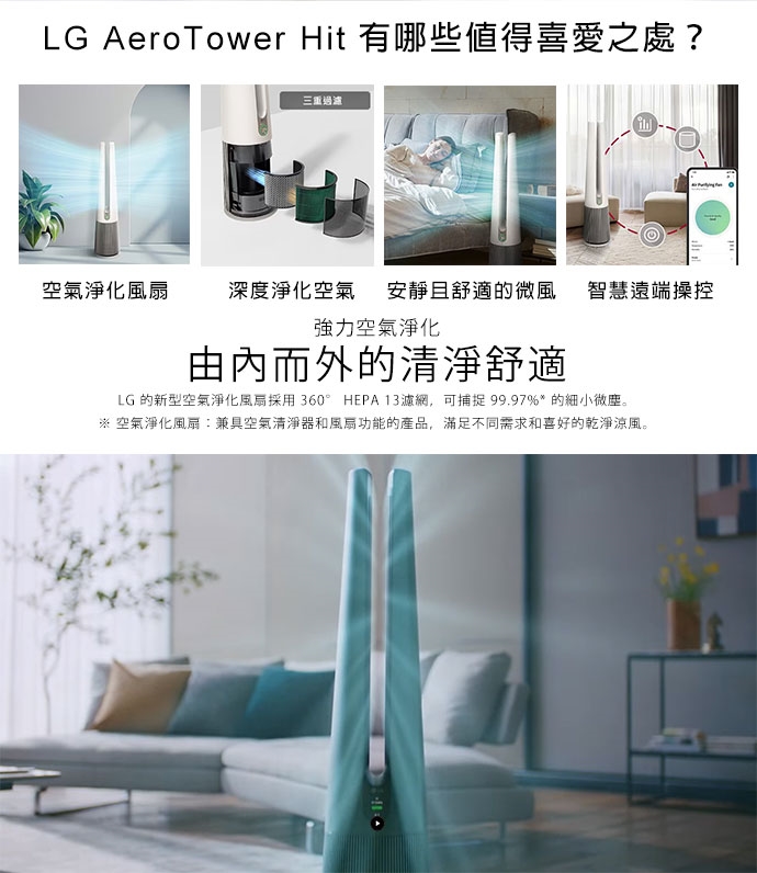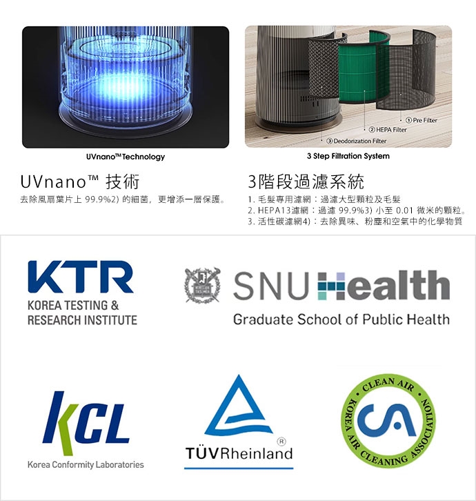 ★採用360°HEPA濾網和UVnano™技術可過濾99.9%微細粉塵、細菌及病毒