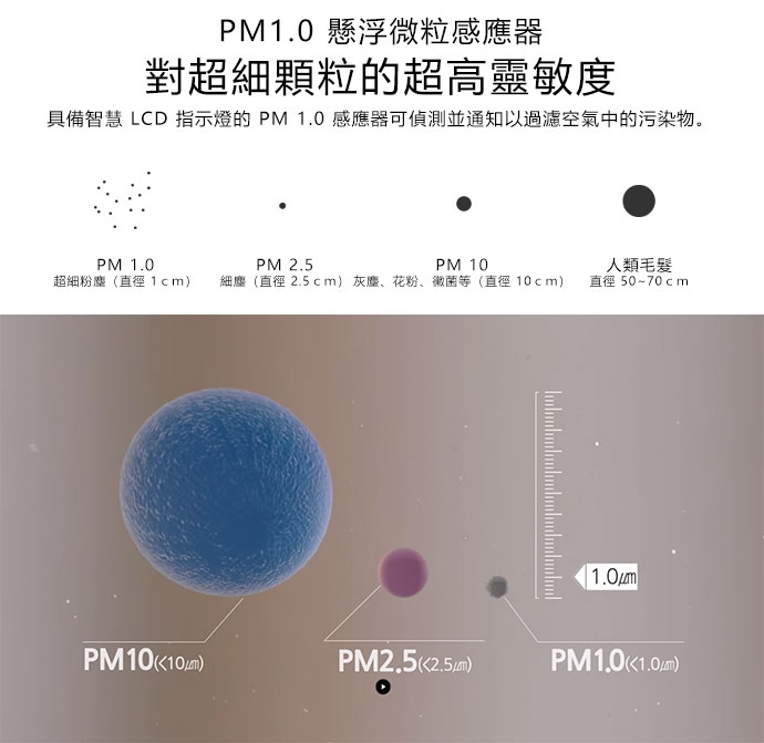 ★具備智慧LED指示燈的PM1.0感應器可偵測污染物