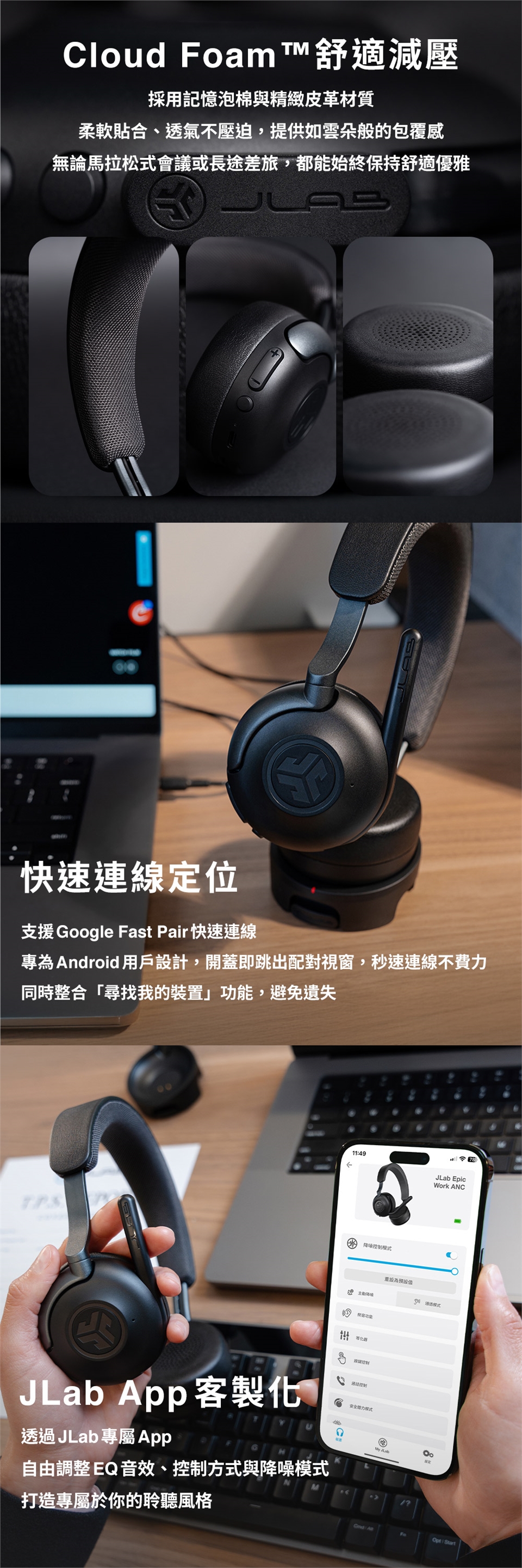 • 產品名稱:JLab Epic Work ANC 無線降噪辦公耳罩藍牙耳機