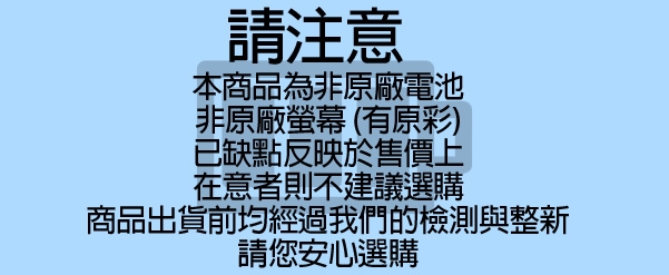 福利品商品並非全新機,商品皆為功能正常之良品,可能有些微刮傷,但不影響功能,且出貨前都已重新整理和包裝。規格以原廠文案為主,配件內容也有小變動,不參與任何原廠活動,請勿以全新機觀念購買,確定購買後如遇維修,保固期內均由供應商代送原廠或維修站,請勿自行送修以免爭議。確定拆機後會取消供應商保固,福利品可能進行維修更換零組件過,購買前請先詳讀購前須知後不介意者再再進行下訂。