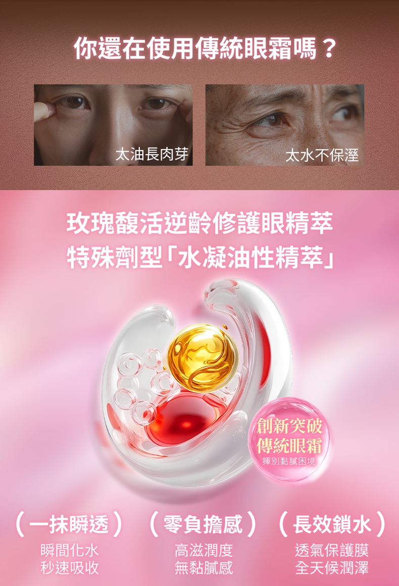 主商品:玫瑰馥活逆齢修護眼精萃15ml*4瓶(開放一瓶體驗,退貨須歸還)
