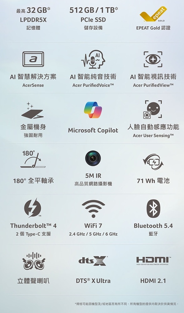 備註:以上規格僅供參考,如有任何問題,請依原廠公告為主