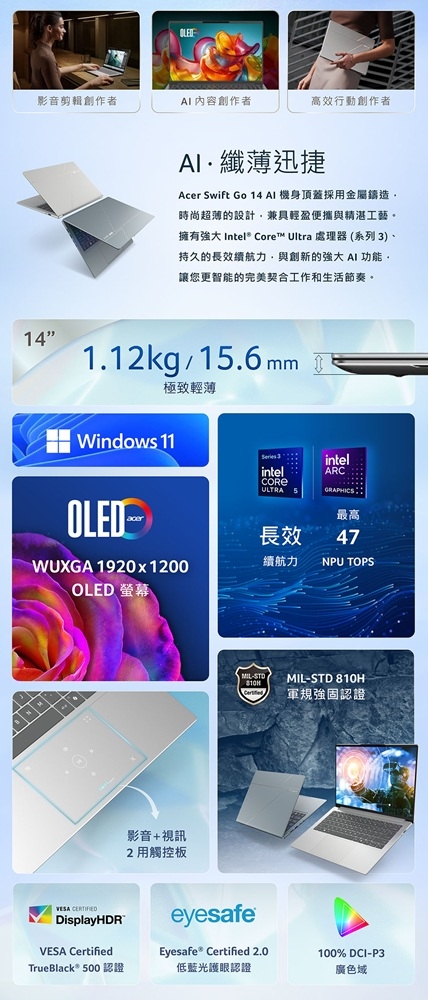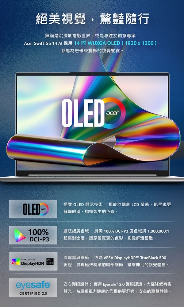尺寸/規格:14" 16:10/OLED/鏡面