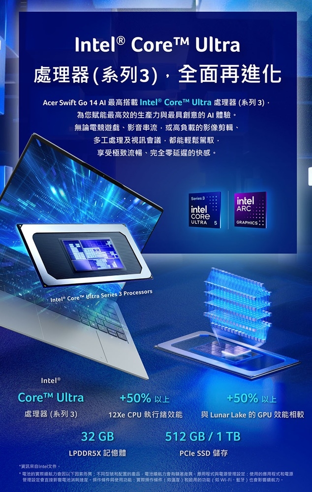 顯示晶片:Intel® Arc™ B390 GPU