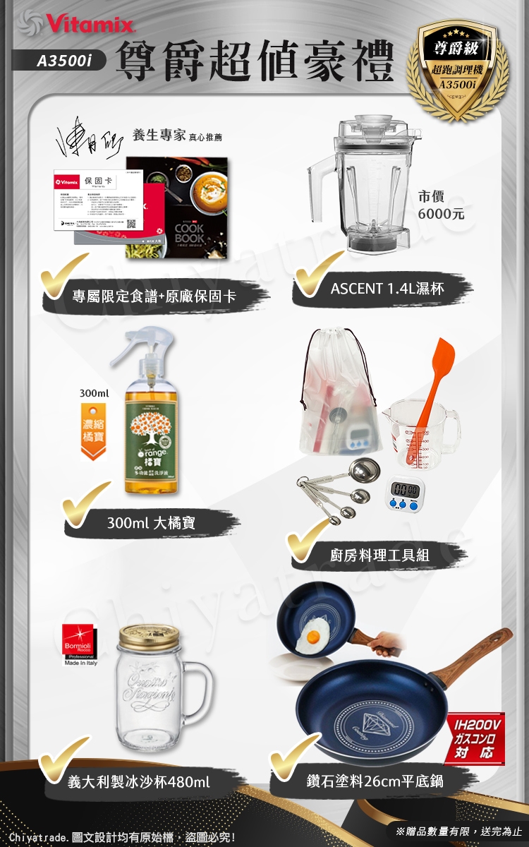 產品配件: 2.0L攪拌杯、專屬攪拌棒、馬達底座、原廠食譜書